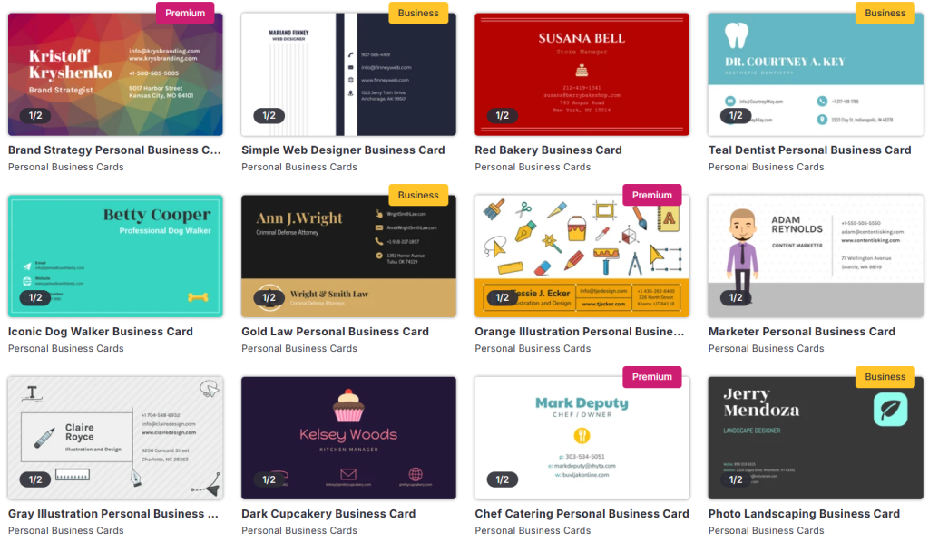 - Template Library: Venngage has a number of different business card templates that can be used based on what type of design you would like to create.